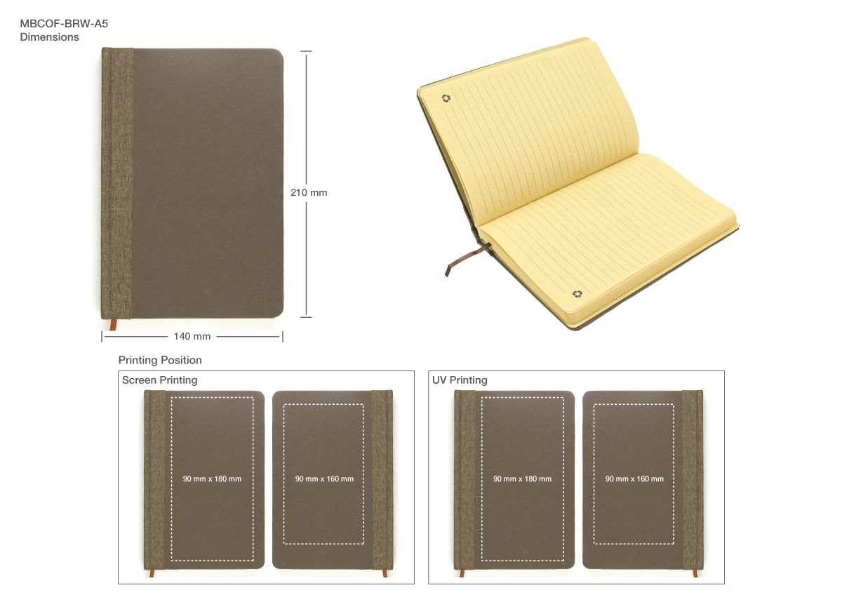- A5 Size Hard Cover Notebooks in coffee fiber material with matching coffee color textured linen design