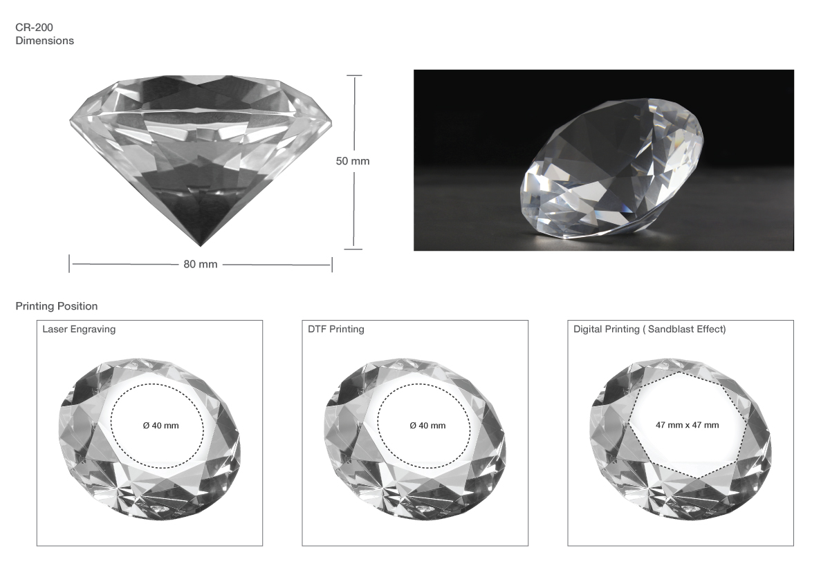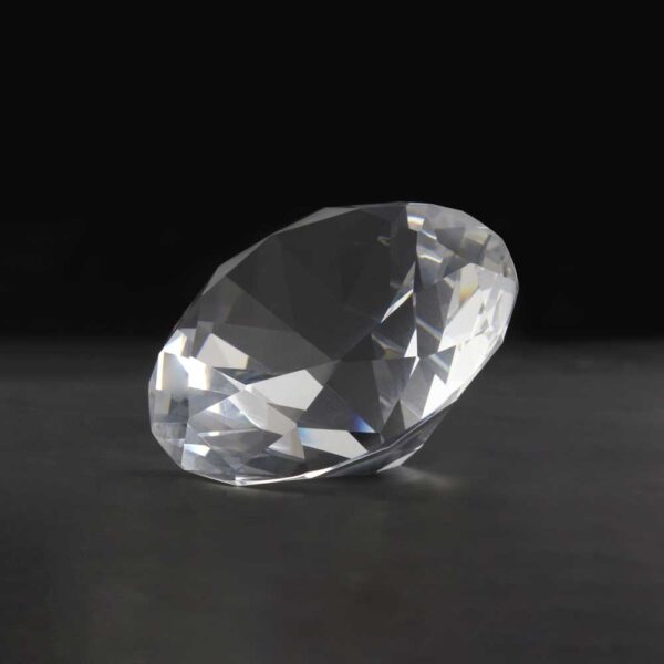 A popular paperweight type crystal diamond awards in an elegant 8cm Clear diamond shape that is perfect for gift & advertising with your congratulatory message