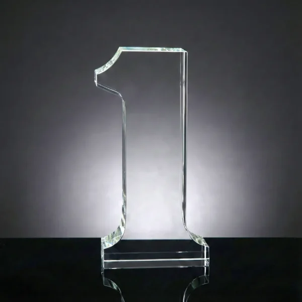 Crystal Glass Trophy in Number One Shape with Gold Lock Closure Box