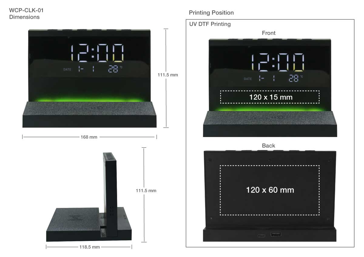 This multifunctional device supports both 12-hour and 24-hour time displays, alongside date and temperature readings, ensuring you stay informed at a glance. Designed with elegance in mind, its sleek and compact profile adds a stylish touch to any bedside table, while the anti-slip wireless charging pad ensures your devices align perfectly for efficient charging.