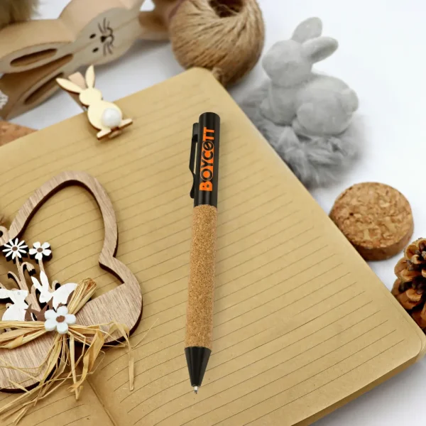 Combine elegance with sustainability using our Eco-friendly Metal Pens featuring a natural cork barrel and a sleek black metal finish. Designed for comfort and style, this twist-action pen writes smoothly with black ink and offers a modern, eco-conscious look. The cork texture not only enhances grip but also emphasizes your brand’s commitment to the environment. Perfect for corporate promotions, trade shows, and eco-friendly campaigns, this pen is a durable and sophisticated choice for any branding initiative.