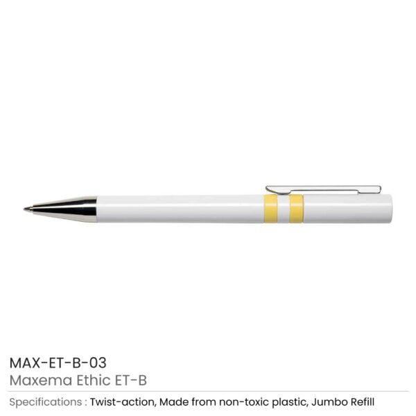 Maxema Ethic pens are cool and creative branded logo pens. They had crafted with reliable and highly resistant ABS plastic material. Thus, they are durable and safe for use. Its barrel had specially crafted with solid white color. Thus, it has a glossy finish on the whole barrel. The whole barrel of the Maxema ethic pen is white. While it has colorful bands on it. Thus, it has a unique and creative clip. While the tip is silver in color. Thus, it gives the pen a luxurious look. While it also comprises a jumbo refill so you can enjoy 2500m smooth flow writing.