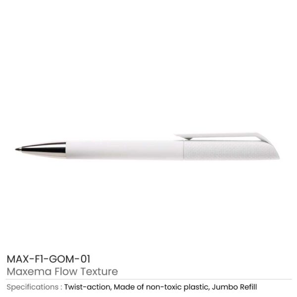 Maxema flow texture pens are cool and creative custom printed pens. They had crafted with reliable and highly resistant ABS plastic material. Thus, they, are durable and safe for use. Its barrel had specially crafted with a solid color. Thus, it has a glossy finish on the whole barrel. The whole barrel of the Maxema flow texture pen is in the same color. However, it has a creative clip that is in white. These are excellent personalized plastic pens for the promotion of small brands.