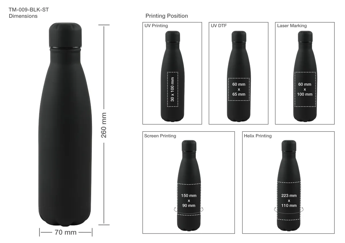 Premium Soft Touch Matt Cola Bottles in Stainless Steel 500ml