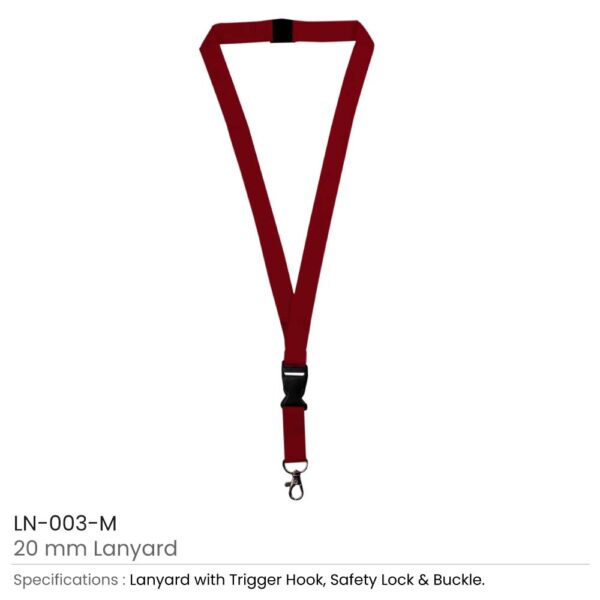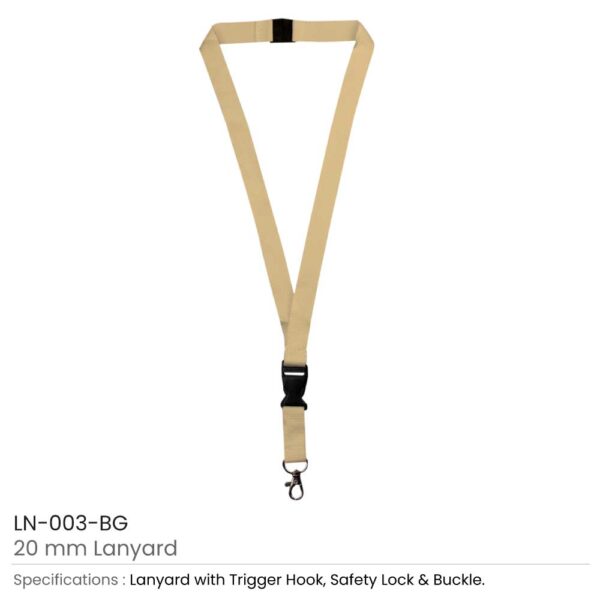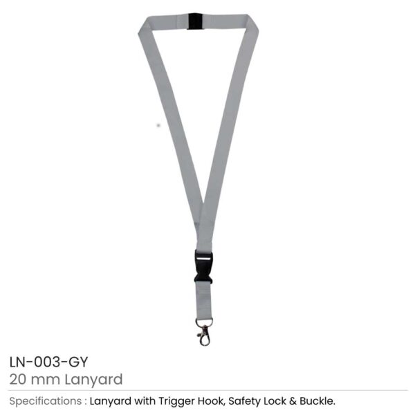 Lanyards with Hook, Safety Lock, and Buckle, 20 mm