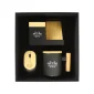 - Packaging: Luxury vertical-opening black fiberboard box with gold lock closure