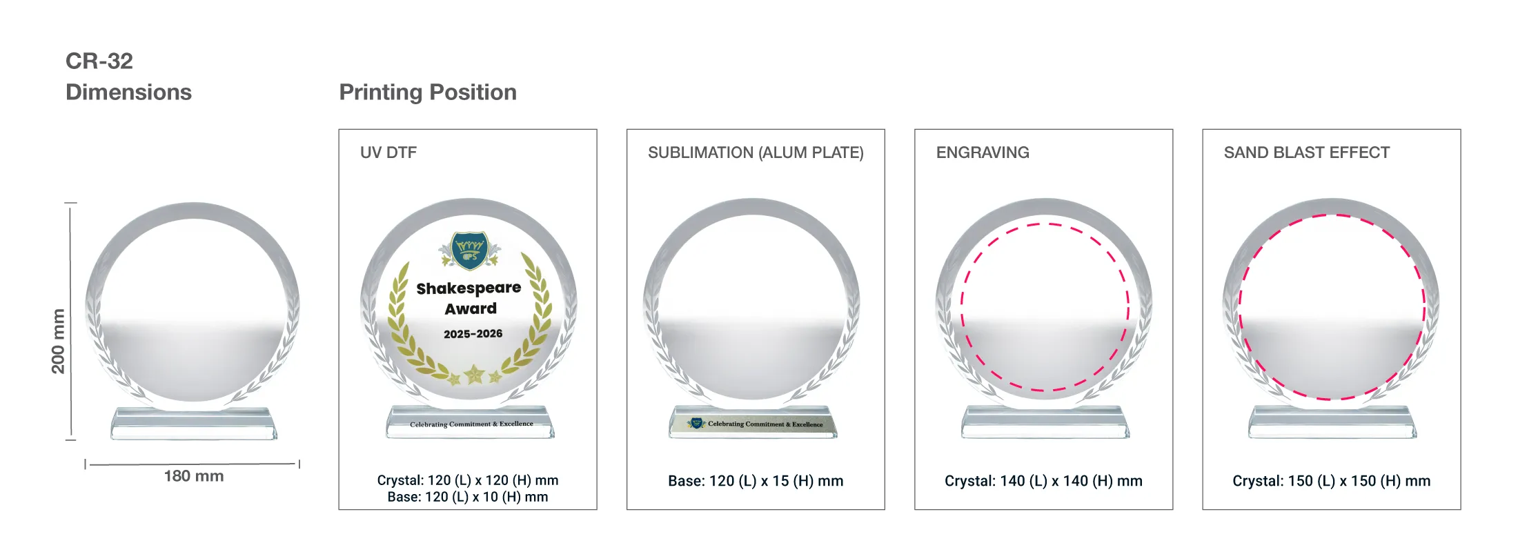 - Design: Elegant round clear crystal award with engraved leaf detailing