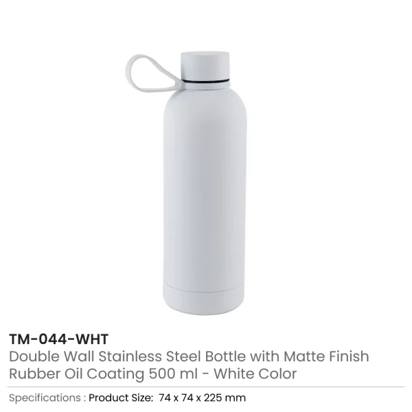 Stay hydrated in style with our premium Stainless Steel Water Bottles, featuring a soft-touch rubberized coating and a matte finish for a comfortable grip and a modern look. Designed with a double-wall vacuum structure, it maintains temperature effectively — keeping drinks cold for up to 24 hours and hot for up to 12 hours. The leakproof twist cap and detachable silicone handle make it convenient and portable for daily use. Available in four stylish colors — black, blue, white, and green — this BPA-free 500ml bottle is the perfect eco-friendly choice for corporate gifting, promotions, and personal use.