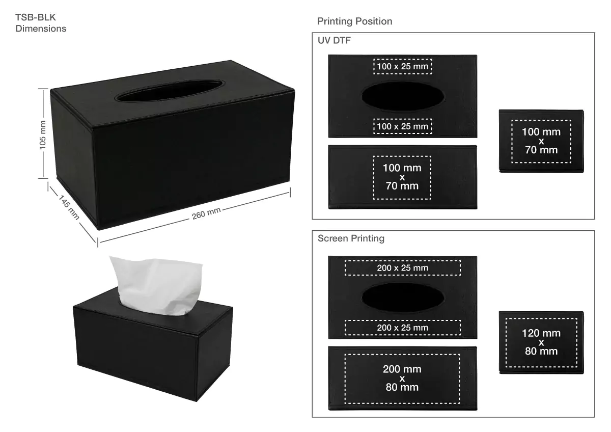 The black PU leather tissue box is an excellent blend of elegance, functionality, and durability. It enhances any space with its sleek design while providing a convenient way to store and access tissues. Whether placed in the home, office, or car, it adds an upscale touch and proves to be a long-lasting, easy-to-maintain accessory.