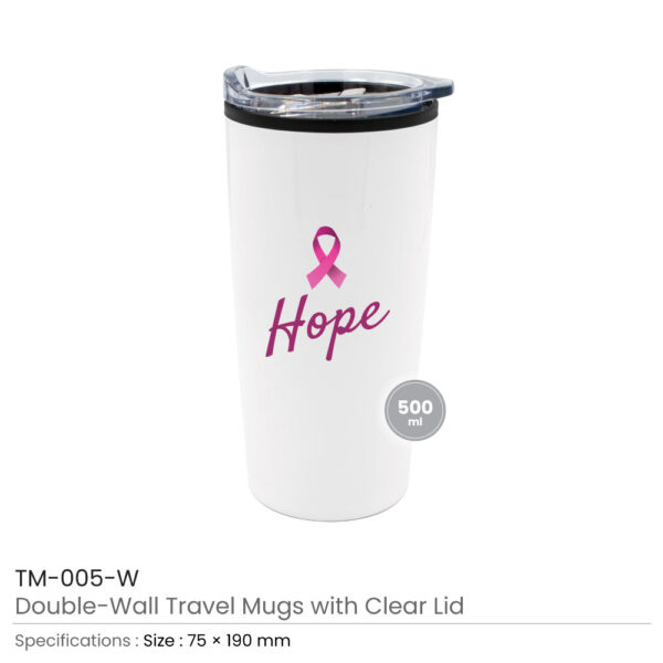 Travel Mugs with Breast Cancer Awareness Logo