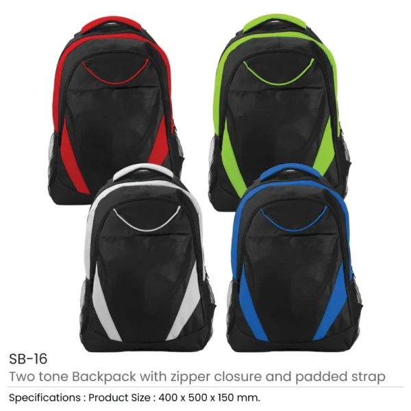 Backpacks in two-toned are a popular and versatile choice for carrying various items, such as books, laptops, clothing, outdoor gear, and more. so these backpack is an ideal choice for branding logos and promotional giveaways.
