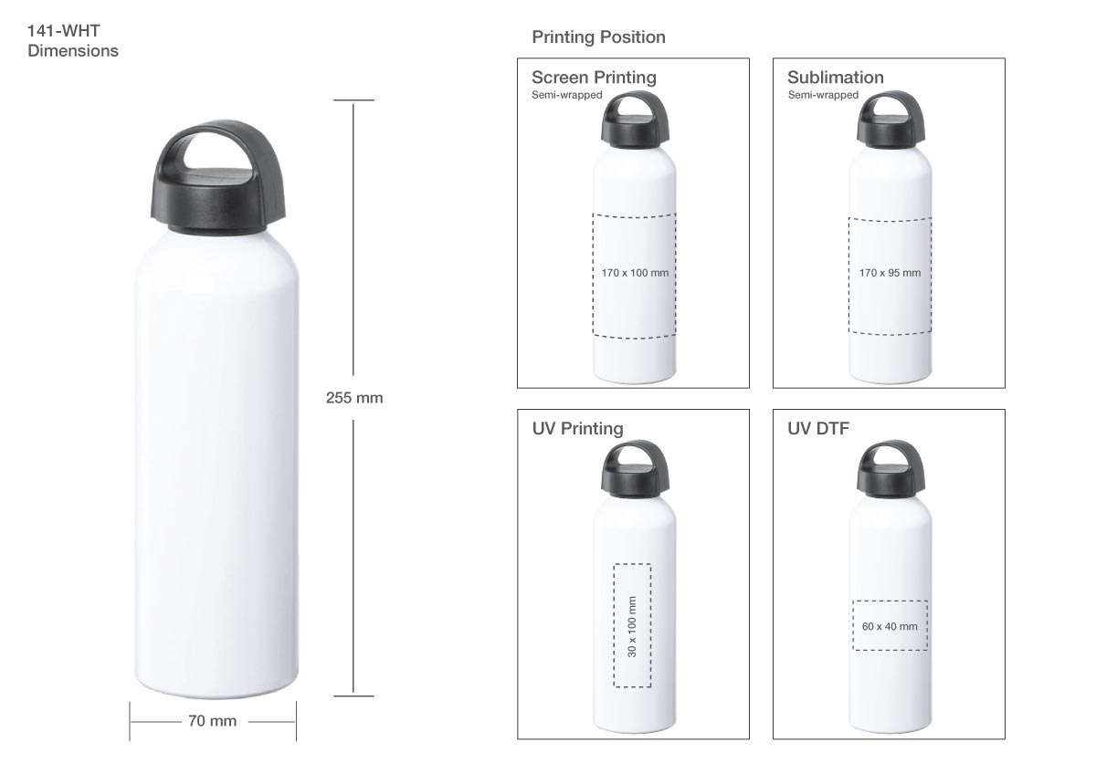 800ml White Sublimation Bottles with a twist to open black plastic lid.